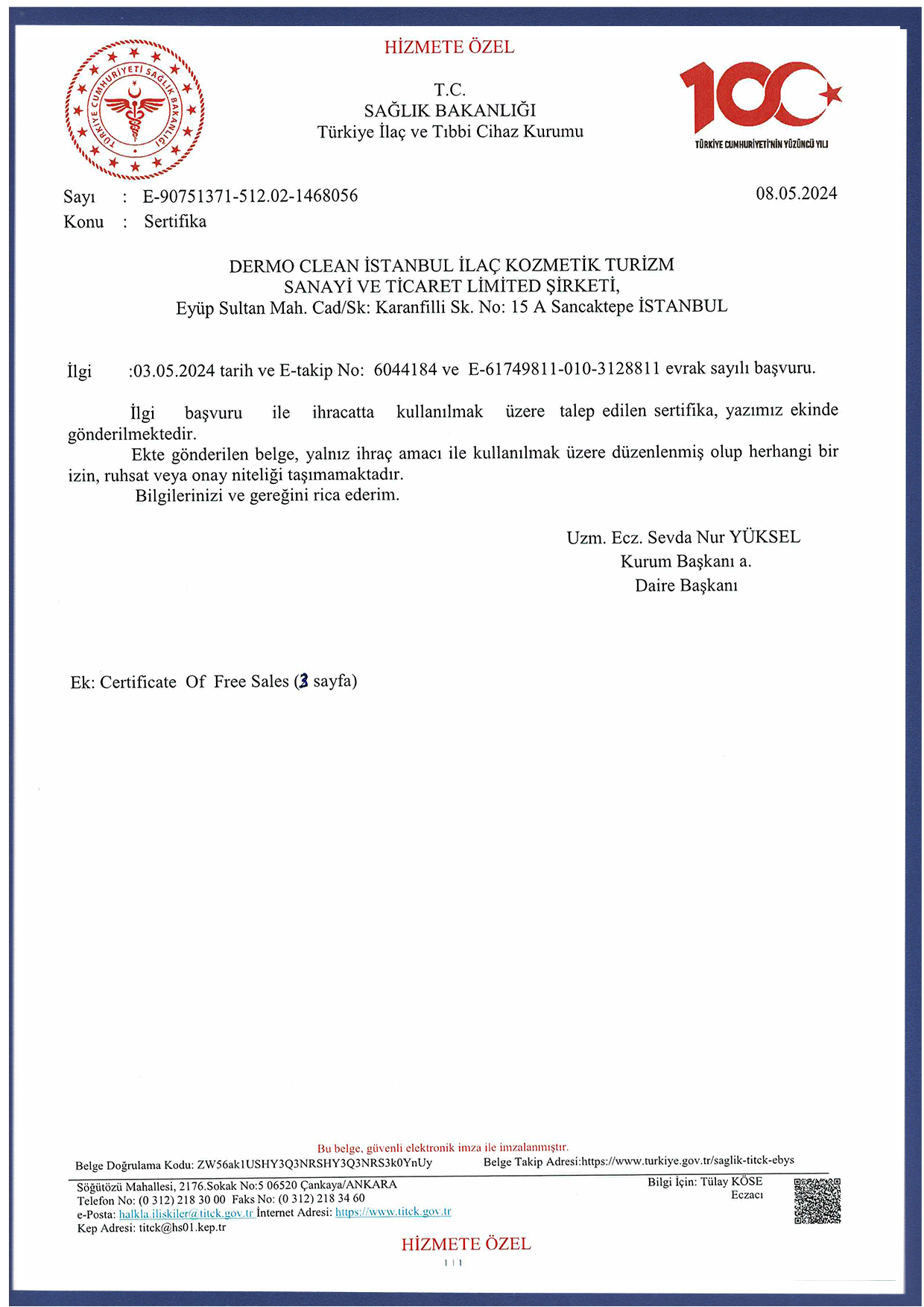 KOZMETİK ÜRÜN SERBEST SATIŞ SERTİFİKASI